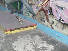 - Se toma impulso para saltar, se le da un golpe seco al tail y se desliza el pie que estaba en medio de la tabla a los tornillos delanteros (raspando).